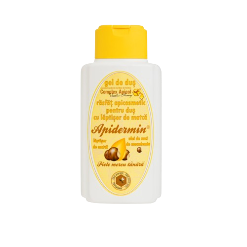 In rasfatul apicosmetic pentru dus Apidermin® proprietatile antirid ale laptisorului de matca sunt dublate in lupta impotriva imbatranirii timpurii a pielii de uleiul de nuci de macadamia. Laptisorul de matca, o hrana regala, complex de vitamine este cel mai puternic aliat natural in lupta impotriva ridurilor, hidratand pielea si stimuland regenerarea celulara. 250ml