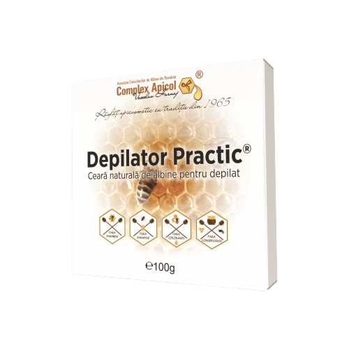 Epilatul cu ceara este cel mai eficient pentru ca firul de par este indepartat de la radacina. Depilator Practic are substanta activa propolis ce are un efect cicatrizant asupra pielii, vindecand instant iritatiile sau inflamatiile.Depilatorul Practic este 100% natural, delicat chiar si cu pielea sensibila sau predispusa la reactii alergice, uleiurile eterice, balsamurile avand un rol dezinfectant si usor analgezic. Parul nedorit este indepartat cu mai putina durere, pielea este hidratata iar porii sunt imediat inchisi lasand pielea catifelata.Cutia cu depilator deschisa se introduce intr-un vas cu apa care se incalzeste pana se lichefiaza ceara din cutie. Ceara se aplica cu o spatula din lemn in directia de crestere a firelor de par apoi se lasa sa se raceasca, smulgand fasiile de ceara brusc contrar directiei de aplicare.